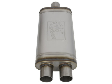 aFe MACHForce XP SS Muffler 2.5in Center Inlet / 2.5in Dual Outlets 18in L x 9in W x 4in H Body