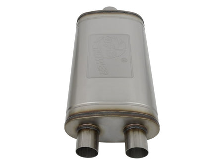 aFe MACHForce XP SS Muffler 3in Center Inlet / 2.5in Dual Outlets 22in L x 11in W x 6in H Body