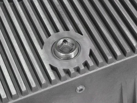 aFe Powers new deep transmission pan brings performance engineering to the protection of your trucks transmission. This transmission pan has additional capacity for 3 to 4 more quarts over stock at the factory line, a magnetic drain plug and a 1/8" NPT port for your temperature sensor. Built-in internal and external fins transfer heat from the fluid to the outside air for maximum cooling. T his transmission pan is constructed out of durable die-cast A380 aluminum with reinforced ribs and a wrinkle black powder-coating for maximum strength and styling.