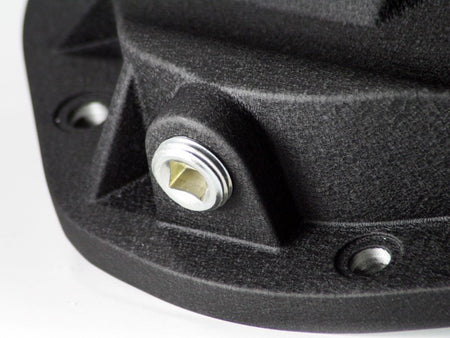 aFe Powers new front-end differential cover brings performance engineering to the protection of your trucks front-end. This differential cover has a 3-1/2 quart lube capacity (factory cover holds 2-1/2 quarts) at the factory fluid level line, a magnetic drain plug and a magnetic fill plug to remove unwanted debris. Built-in external fins transfer heat from the fluid to the outside air for maximum cooling. aFe has also designed a large oil level sight glass with calibration plug set to the factory fluid level to eliminate overfilling. This differential cover is constructed out of durable die-cast A380 aluminum with reinforced ribs and a wrinkle black powder-coating for maximum strength and style. When it comes to engineering for power, performance, protection and value, aFe Power is the only choice.