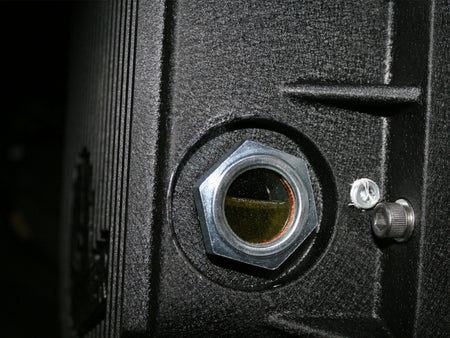 aFe Powers new front-end differential cover brings performance engineering to the protection of your trucks front-end. This differential cover has a 3-1/2 quart lube capacity (factory cover holds 2-1/2 quarts) at the factory fluid level line, a magnetic drain plug and a magnetic fill plug to remove unwanted debris. Built-in external fins transfer heat from the fluid to the outside air for maximum cooling. aFe has also designed a large oil level sight glass with calibration plug set to the factory fluid level to eliminate overfilling. This differential cover is constructed out of durable die-cast A380 aluminum with reinforced ribs and a wrinkle black powder-coating for maximum strength and style. When it comes to engineering for power, performance, protection and value, aFe Power is the only choice.