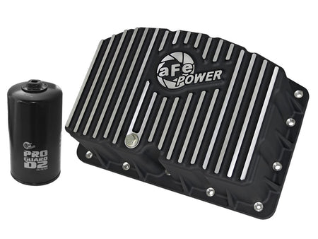 AFE Pro Series Engine Oil Pan Black w/Machined Fins; 11-16 Ford Powerstroke V8-6.7L (td)