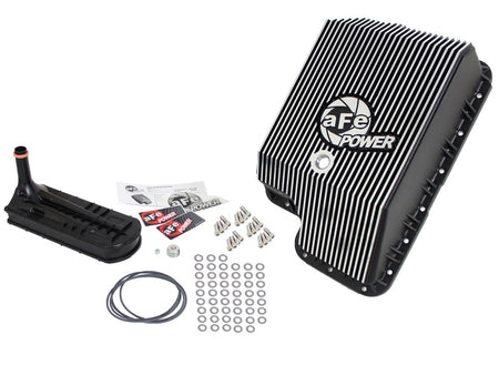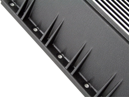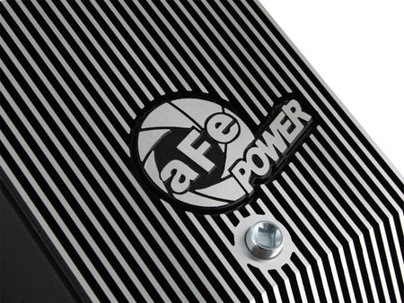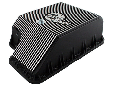 aFe Powers new deep transmission pan brings performance engineering to the protection of your trucks transmission. This transmission pan has additional capacity for 3 to 4 more quarts over stock at the factory line, a magnetic drain plug and a 1/8" NPT port for your temperature sensor. Built-in internal and external fins transfer heat from the fluid to the outside air for maximum cooling. This transmission pan is constructed out of durable die-cast A380 aluminum with reinforced ribs and a wrinkle black powder-coating for maximum strength and styling.