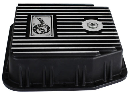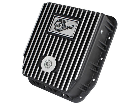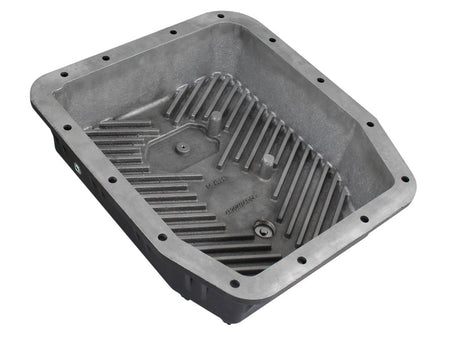 aFe Powers new deep transmission pan brings performance engineering to the protection of your trucks transmission. This transmission pan has additional capacity for 3 to 4 more quarts over stock at the factory line, a magnetic drain plug and a 1/8" NPT port for your temperature sensor. Built-in internal and external fins transfer heat from the fluid to the outside air for maximum cooling. This transmission pan is constructed out of durable die-cast A380 aluminum with reinforced ribs and a wrinkle black powder-coating for maximum strength and styling.