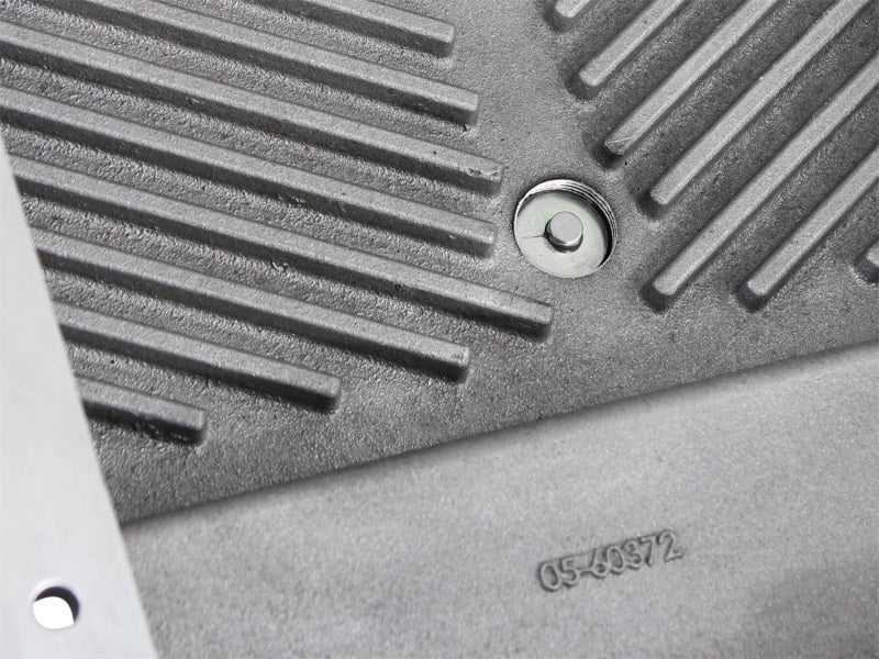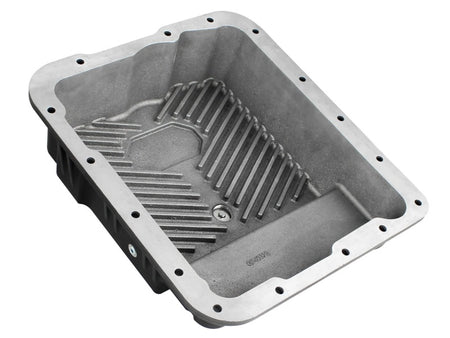 aFe Powers new deep transmission pan brings performance engineering to the protection of your trucks transmission. This transmission pan has additional capacity for 3 to 4 more quarts over stock at the factory line, a magnetic drain plug and a 1/8" NPT port for your temperature sensor. Built-in internal and external fins transfer heat from the fluid to the outside air for maximum cooling. This transmission pan is constructed out of durable die-cast A380 aluminum with reinforced ribs and a wrinkle black powder-coating for maximum strength and styling.