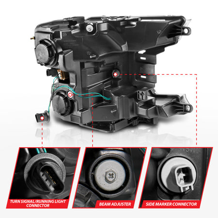Projector Headlight Set, Clear Lens, Black Housing, w/LED, Pair, . Guaranteed To Improve Your Vehicles Appearance. Rigorously Tested For Fit And Function. Simple Plug And Play. No Modifications Required. Easy Installation Using Common Hand Tools. Uses Stock Mounting Locations And Hardware. D.O.T. Compliant To S.A.E. Standards. Sold As A Pair.