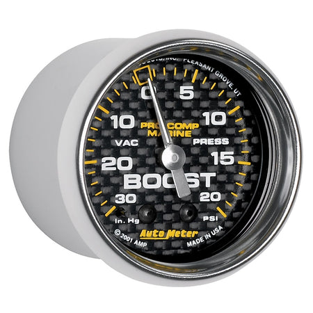 Autometer Marine Carbon Fiber 2-1/16in 30INHG/20PSI Mechanical Vacuum/Boost Gauge