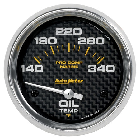 Autometer Marine Carbon Fiber Electric Oil Temperature Gauge 2-5/8in 140-300 Deg F