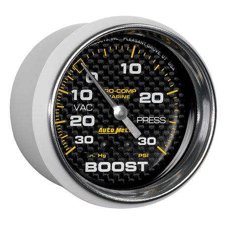 Autometer Marine Carbon Fiber Gauge 2-5/8in Mechanical Vacuum/Boost Gauge 30INHG-30PSI