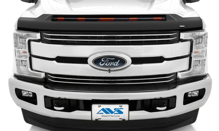 The Aeroskin LightShield Pro combines AVS's potent and proven hood deflector design with cutting-edge LED lighting technology for an entirely new hood protection experience. Custom-molded from tough Dura-Flex 200 TPO material so it can handle whatever the road throws at it, and come back for more. It's easily the most effective way to protect your vehicle's hood and windshield from the threat of rocks and debris from the road. But where the Aeroskin LightShield Pro shines the brightest is what truly sets it apart from any other hood deflector. Fully-integrated amber LED running lamps add a vivid accent and provide optimum visibility in any condition. Simply activate your turn signals or hazard lights and the LED lights transform into a stunning sequential display that makes your truck impossible to ignore. There's even an LED sequence when the truck is locked or unlocked, so your truck practically finds you in the parking lot! Of course, the Aeroskin LightShield Pro delivers the factory-quality fit & finish that has made AVS the most respected name in auto accessories for over 80 years.