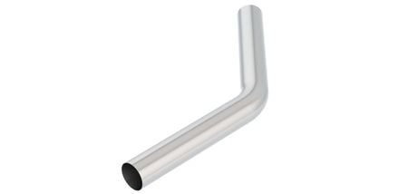 45-degree elbow with 4" bend radius and 12.5" legs. Heavy 18-gauge high-quality T-304 austenitic stainless steel. Mandrel bent for consistent diameter throughout the bend area for maximum flow. Natural mill finish can be brushed or polished prior to installation. Size is outside diameter.