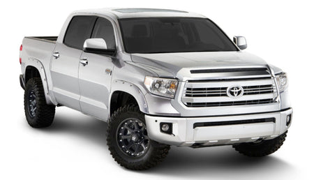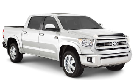 Give your Toyota Tundra the appearance of an upmarket trim level with Bushwacker OE Style(R) Fender Flares. They install in minutes with no drilling. And, they're designed specifically to complement your vehicles styling, so it looks like it came from the factory that way, with a fit, finish, and level of protection that exceeds original equipment. You can leave your OE Style(R) Fender Flares with their original matte black finish for a sporty, blackout look. Or, paint them to match or accent the body color for the look of limited-edition luxury or something completely customized . Your OE Style(R) Fender Flares are made with Dura-Flex(R) 2000, our exclusive material designed for upgraded durability and flexibility. They're thick too, so they wont warp. And, they're 100% UV protected, so they wont chalk. OE Style(R) Fender Flares deliver premium-grade protection with premium-level style.