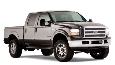 Give your Ford Super Duty the appearance of an upmarket trim level with Bushwacker OE Style(R) Fender Flares. They install in minutes with no drilling. And, they're designed specifically to complement your vehicles styling, so it looks like it came from the factory that way, with a fit, finish, and level of protection that exceeds original equipment. You can leave your OE Style(R) Fender Flares with their original matte black finish for a sporty, blackout look. Or, paint them to match or accent the body color for the look of limited-edition luxury or something completely customized. Your OE Style(R) Fender Flares are made with Dura-Flex(R) 2000, our exclusive material designed for upgraded durability and flexibility. They're thick too, so they wont warp. And, they're 100% UV protected, so they wont chalk. OE Style(R) Fender Flares deliver premium-grade protection with premium-level style.