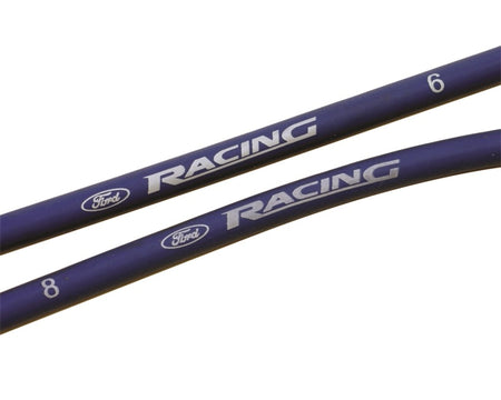 These 9mm wires feature a spiral-wound suppression core for low resistance and minimum spark loss. They have tough silicone insulation to withstand high temperatures and voltage loss for minimum crossfire, and are highly resistant to fuels, oils, and solvents. Other features include 45 degree plug boots (most applications), stainless steel distributor cap terminals, and a coil wire (if applicable). The wires are numbered for each cylinder and have the "Ford Racing" script on them.