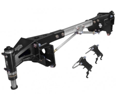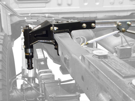 Our resulting dynamic system is one that is soft and compliant allowing full suspension travel at slow speeds, yet at high speeds will create very high forces to resist bottoming out. ICON's Ford Raptor hydraulic bumpstop system uses a 2.5" travel air bump allowing the shock additional distance to control energy, and does not interfere with suspension travel under normal driving conditions. The clamshell bracket design with triangulated cross braces not only gives a rigid mounting point for the air bump, it helps support a known weak part of the frame prone to failure.