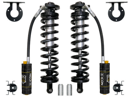 ICON's 2.5 VS Series Remote Reservoir Bolt-In Coilover Conversion Kit will add a new level of performance and adjustability to 2005-UP F-250 and F-350 trucks. The advantage of utilizing a coilover conversion kit is that they have been designed to increase the overall damping ability of the vehicle while at the same time allowing for user-defined ride height adjustment. The 2.5" Remote Reservoir Coilover featured in these kits is based off of ICON’s 2.5 VS Series shock line - meaning that features like Eibach coil springs, FK Rod End bearings, and vehicle-specific valving come standard. Quality machined components and a fully serviceable design make for a product that will stand the test of time, yet retain the ability to be rebuilt or revalved as necessary. ICON’s CDC (Compression Damping Control) Valve option adds to the adjustability of these coilover conversion kits, allowing the end-user to adjust the ride characteristics of the vehicle with the turn of a knob.