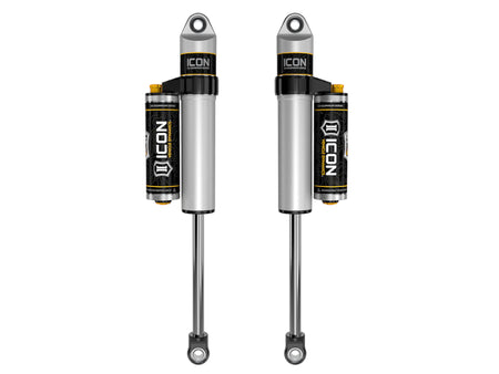 ICON Vehicle Specific (V.S.) 2.5 Series shocks are designed and built to give your vehicle outstanding performance off-road and a smooth ride on the street. These shocks are configured specifically for each application in both length and damping tune. Like all ICON shock absorbers, V.S. 2.5 Series shocks are 100% rebuildable and 100% revalveable. For piggyback and specific remote reservoir applications, ICON's unique use of a 6061 billet aluminum manifold a few inches below the top cap of the shock creates an internal Bump Zone" that when used creates an additional 20% of damping force. This additional force helps prevent harsh bottom outs and controls the suspension when compressing at high velocity. The ICON CDC Valve is an externally adjustable valve that restricts oil flow into the reservoir which creates 10 levels of compression damping force ranges. If you are looking for a more user defined tune consider looking into the Omega Series bypass shocks."