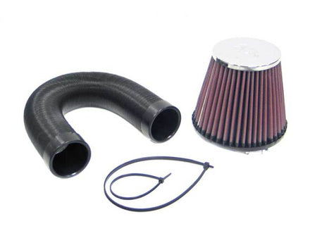 K&N 57i Series induction kits are specifically designed for each different vehicle and will free your car from the size restriction that comes with the factory air box. These economical kits can take a variety of different forms based on vehicle characteristics and available space under the hood. Each kit is designed to provide power throughout the RPM range. The extra surface area of these open-air air filters provides even more airflow at lower restriction than a K&N O/E replacement filter which is limited to the size of the factory air box. The larger air filter also captures and holds more dirt increasing its service life before a cleaning is required (up to 100,000 miles). The filter is either directly attached to the engine carburetor or throttle body or indirectly through a tube assembly running from the filter to the engine. All adapters are made from high quality materials such as steel, aluminum, silicon or reinforced nylon to ensure long life. 57i Series Intakes are not legal for use in California and other US States adopting California emission standards.
