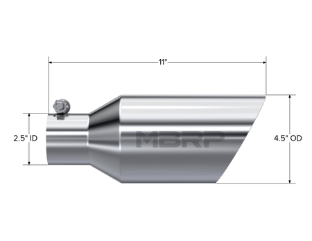 MBRP Universal Tip 4.5 O.D. Dual Walled Angled Rolled End 2.5 Inlet 12in Length - T304