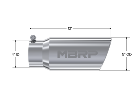 MBRP Universal Tip 5 O.D. Angled Rolled End 4 inlet 12 length