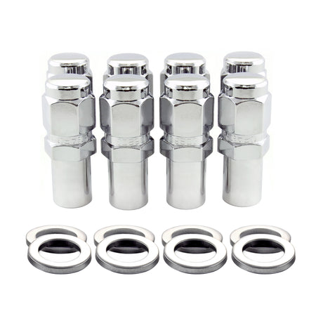 Chrome plated lug nuts lead a tough life.; Think about it, harsh elements, nasty corrosive wheel cleaners and lead-foot drivers.; Not to mention overzealous impact guns and loose fitting lug wrenches.; This kind of treatment destroys ordinary lug nuts which turns even the best looking wheels ugly.; Tough Nuts can take the punishment and keep your wheels looking beautiful.; Tough Nuts are guaranteed for life not to rust, chip or peel.; McGard manufactures lug nuts in the USA to meet or exceed O.E.M.; standards for safety and durability.; Every lug nut is fully machined from restricted chemistry steel made specifically for McGard and through-hardened for its unsurpassed level of safety.; McGard's plating process includes several layers of nickel and one layer of microporous chrome producing a superior finish while protecting against rust.; Tough Nuts are designed and built for the real world, because life is tough.; Long 1.00 Shank length for use with custom replacement aluminum wheels that are at least 7/8 but less than 1-1/4 thick at the stud hole and have a flat seat.; Contains polished stainless steel washers.; This product may contain globally sourced materials/components.
