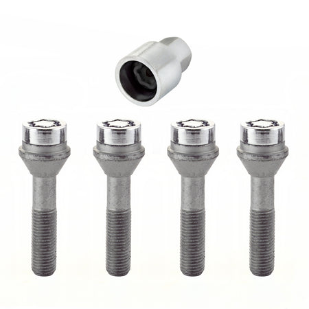 Protecting the world's finest wheels and tires from theft since 1964.; Wheel Lock bolts are designed in USA and manufactured in EU and USA. Presently, McGard is an Original Equipment wheel lock supplier to most automobile brands around the world.; These easy-to-use wheel locks function like regular lug bolts, but require a special key tool for installation and removal.; The steel collar on the user friendly key guides the key into the lock pattern.; The collar holds the key in alignment for easy installation and removal.; The computer generated key designs allow for an infinite number of key patterns.; The extra narrow pattern groove on the lock resists the intrusion of removal tools into the pattern.; Every McGard wheel lock utilizes fully machined, restricted chemistry steel made specifically for McGard and through-hardened for its unsurpassed level of security.; McGard's plating process includes several layers of nickel and one layer of microporous chrome producing a superior finish while protecting against rust.; The bolt stem has a dacromet coating to meet O.E.M.; standards.; For use with steel or aluminum wheels with a tapered seat. This product contains globally sourced materials/components.