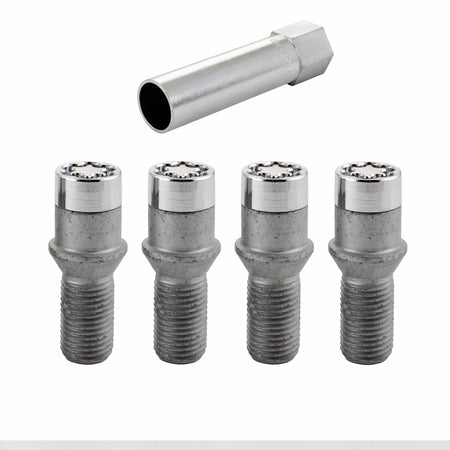 McGard Wheel Lock Bolt Set - 4pk. (Tuner / Cone Seat) M14X1.5 / 17mm Hex / 28.6mm Shank L. - Chrome