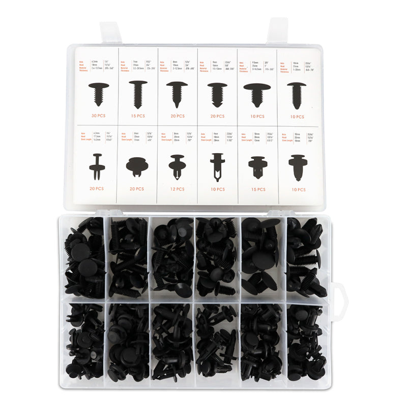 If you’ve ever removed trim from an older vehicle, chances are you’ve destroyed a fair number of trim clips in the process. Although trim clips reduce vehicle costs associated with metal fasteners, they also introduce frustrations as they are typically only effective for a single installation. Luckily, Mishimoto has introduced a full lineup of both Tree Clips and Push Rivet Clips, ensuring you have the appropriate clip for your application. Our assortment kit contains 12 different clips of varying size and shape for different uses on your vehicle. Our trim clips are constructed from nylon-based material, ensuring a secure connection and superb long-term reliability. As with all our products, these trim clips include our signature Mishimoto Lifetime Warranty.
