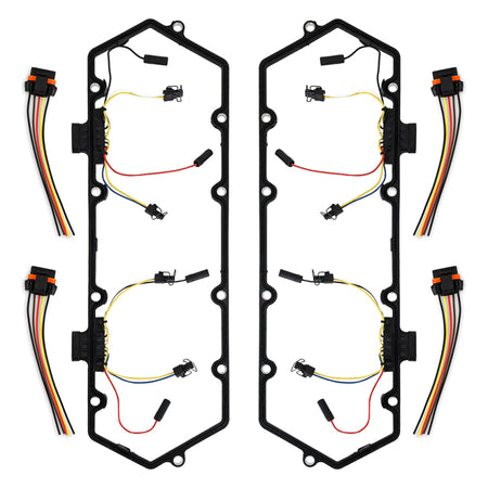 Glow plug harness failure is quite common for high mileage 7.3L and 6.0L Powerstroke models. Although many owners will find this harness damaged while performing other engine maintenance, sometimes a hard cold start is an early indicator that the harness has begun to fail. Years of supporting high amperage glow plug draw combined with high engine bay temperatures will melt the plastic connectors, eventually resulting in shorts within the circuit. Using our extensive experience with the Ford Powerstroke, our team identified the need for a more durable and economical replacement for the factory harness. The Mishimoto Powerstroke glow plug harness includes direct-fit valve cover gaskets with integral glow plug harnesses. In addition, our kit includes replacement pigtail connectors in the case that your engine harness has also been damaged. This full replacement kit includes everything you need to restore the glow plug wiring harness. Our kit uses high-quality connectors, robust terminals, and superior seals ensuring years of reliable service. As with all our products, this glow plug harness kit includes our signature Mishimoto Lifetime Warranty.