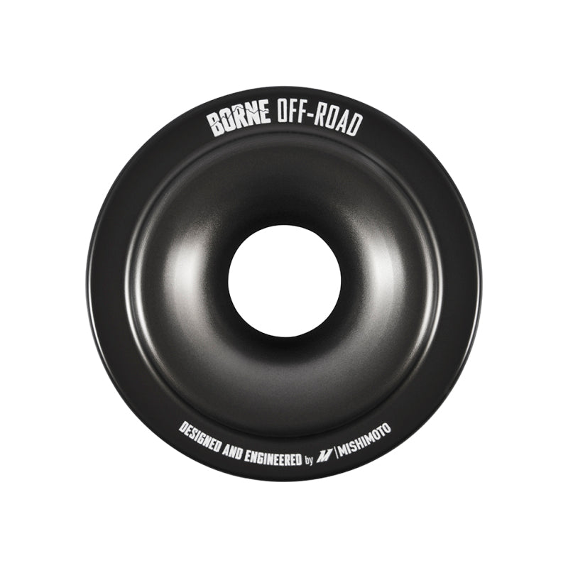 Off-roading and overlanding are 50% driving skill and 50% knowing what to do when you get stuck. And you will get stuck. For that 50% of the time that you’re not navigating trails, a proper recovery system is essential. A winch with a strong line, a few shackles, and something to connect them together are the bare minimum when it comes to recovery. In between your winch line and whatever you’re using as an anchor, you need something that rotates and takes the strain off your winch line. Twenty years ago, you’d be lugging around a heavy steel snatch block and wondering if you greased the bearing recently. But these days, there’s a lightweight, simple, safer, and more durable solution in the form of recovery rings. This Borne Off-Road truck and Jeep recovery ring is constructed from ultra-lightweight aircraft grade 6061 aluminum and weighs in at about 1/3 the weight of traditional snatch blocks. Its simple design makes recovery just as simple without worrying about failed or worn-out bearings. Our specially engineered recovery ring features radiused faces that prevent your soft shackle from clamping down on the rings edge, reducing friction for a smoother recovery. The large inner and outer diameters slow the ring’s rotation, and the military-grade hard-anodized coating further reduces friction and prevents scratching that can damage synthetic winch lines. The Borne Off-Road truck and Jeep recovery ring accepts a 1/2-inch winch line and has a working load limit of 22,000 lbs. making it strong enough to recover even the largest off-road vehicle. And, like all our products, it’s backed by our Mishimoto Lifetime Warranty for a lifetime of smooth recoveries.