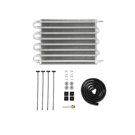 Keep high fluid temperatures at bay with a Mishimoto Universal Transmission Fluid Cooler! This cooler features a highly efficient 12" x 10" x 0.75" tube-and-fin core that promotes dramatic temperature drops. Mishimoto universal fluid coolers are applicable for use with transmission fluid, engine oil, power steering fluid, and a variety of other automotive fluids. This ready-to-install kit includes 5 ft of durable rubber hose, a universal mounting kit, and four worm-gear clamps for secure connections. The universal mounting kit provides installation flexibility to fit any application. This cooler utilizes 3/8" push-on fittings, perfect as a replacement for a damaged stock cooler, or as an upgrade to a vehicle not equipped with a liquid-to-air cooler. As with all our products, this fluid cooler includes the Mishimoto Lifetime Warranty, ensuring superior product quality and craftsmanship.