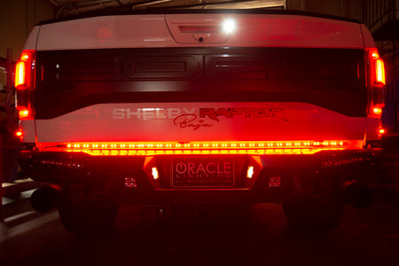 The ORACLE 60" Double Row LED Truck Tailgate Light Bar is the perfect way to add an extra layer of safety and functionality to your pick-up or work truck. Equipped with IP67 rated Waterproof Silicone surrounding the entire strip, it can be installed in minutes by applying the 3M adhesive tape backing and the supplied screws and brackets.By simply inserting directly into your 4-pin trailer light plug, you'll be able to utilize an extra smooth running light that turns into an attention-grabbing brake light and turn signals. The strip also comes with a 12v wire which can be tapped into your factory wiring to create an ultra-bright, pure white reverse light.Help yourself avoid accidents and bad drivers with the ORACLE 60" Double Row LED Truck Tailgate Light Bar.Kit includes the following: (1x) ORACLE 60" Double Row LED Truck Tailgate Light Bar (4x) Screws (2x) Brackets Installation InstructionsProduct is covered under a 1 Year Warranty.