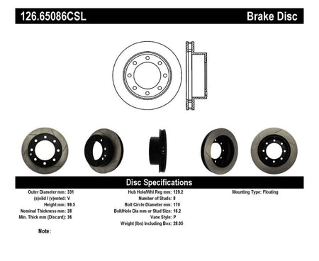 StopTech Power Slot 00-05 Ford Excursion / 99-04 F250/F350 Front Left Slotted CRYO Brake Rotor