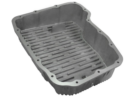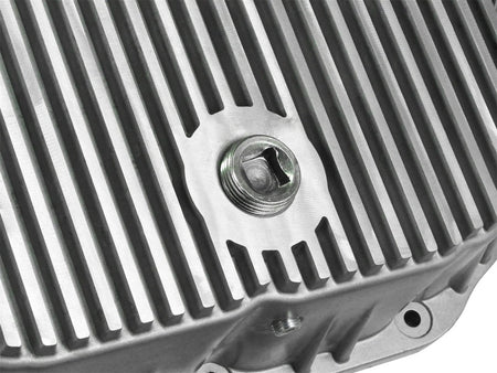 aFe Powers new deep transmission pan brings performance engineering to the protection of your trucks transmission. This transmission pan has additional capacity for 3 to 4 more quarts over stock at the factory line, a magnetic drain plug and a 1/8" NPT port for your temperature sensor. Built-in internal and external fins transfer heat from the fluid to the outside air for maximum cooling. This transmission pan is constructed out of durable die-cast A380 aluminum with reinforced ribs and a wrinkle black powder-coating for maximum strength and styling.
