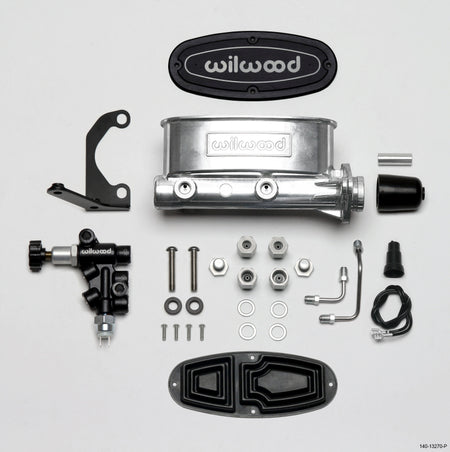 Wilwood has packaged the popular Aluminum Tandem Chamber Master Cylinder with the Combination Proportioning Valve, mounting bracket, fluid tubes and mounting hardware in a kit. Tandem Master Cylinder represents the latest in refinements in brake pressure actuation and fluid control. The slotted flange mounting makes it a simple bolt on for many OE mounts including the popular Chrysler, Corvette, GM, and Ford Mustang bolt patterns and is compatible with manual or power brake system applications. Master cylinders are available in four bores sizes, 7/8", 15/16", 1.00" or 1-1/8", and three finishes, standard, ball burnished or black E-coat. The combination proportioning valve substantially simplifies wiring and brake proportioning adjustments on vehicles with custom brake systems. The combination block maintains full isolation between front and rear fluid circuits and is specifically designed to accompany the Tandem Chamber Master Cylinder. The combo valve and bracket are black E-coated for a performance look and long lasting durability. Stainless steel fluid tubes are precision bent with preinstalled stainless tube nuts for a simple bolt-on installation between the Combination Proportioning Valve and the Wilwood Tandem Master Cylinder. Stainless steel button head fasteners thread into the bracket for a simple installation and years of durable, rust-free performance. Simply connect the fluid lines, bleed the system, and you're finished.