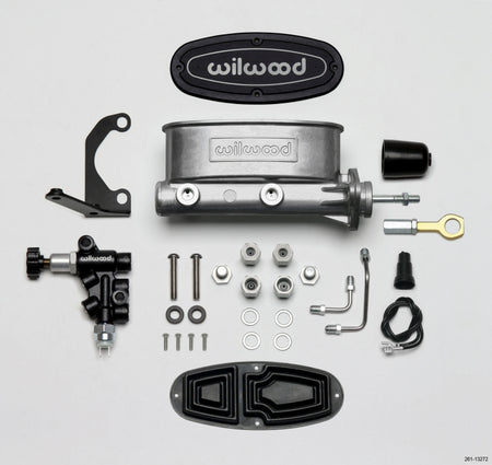 Wilwood has packaged the popular Aluminum Tandem Chamber Master Cylinder with the Combination Proportioning Valve, mounting bracket, fluid tubes and mounting hardware in a kit. Wilwood's Tandem Master Cylinder represents the latest in refinements in brake pressure actuation and fluid control. The slotted flange mounting and included rod assembly makes it a simple bolt on for Early Ford Mustang and fully is compatible with manual system applications. Mustang Tandem Master cylinders are available in two bores sizes, 7/8"or 15/16", and three finishes, standard, ball burnished or black E-coat. The combination proportioning valve substantially simplifies wiring and brake proportioning adjustments on vehicles with custom brake systems. The combination block maintains full isolation between front and rear fluid circuits and is specifically designed to accompany the Tandem Chamber Master Cylinder. The combo valve and bracket are black E-coated for a performance look and long lasting durability. Stainless steel fluid tubes are precision bent with preinstalled stainless tube nuts for a simple bolt-on installation between the Combination Proportioning Valve and the Wilwood Tandem Master Cylinder. Stainless steel button head fasteners thread into the bracket for a simple installation and years of durable, rust-free performance. Simply connect the fluid lines, bleed the system, and you're finished.