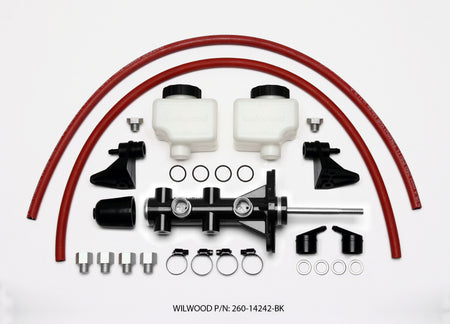 Wilwood’s new Remote Tandem Master Cylinder w/ Pushrod is available in 4 bore sizes 7/8”, 15/16”, 1.00" and 1.12" and in two finishes: ball burnished and black e-coat. They’re designed for mount flanges from 3.22” to 3.40”, common measurements for most domestic cars and trucks from the mid-1960s to present, and offer fluid outlet ports on both sides of the bore. The stroke is set at 1.12” with a volume ratio of 2:1 between the primary and secondary chambers. Machined from high-pressure die castings, each master cylinder weighs only 3lbs, a 75% weight savings over most cast iron OE type master cylinders. We also offer our combination proportioning valve kit, which includes brackets and stainless lines specifically for use with these master cylinders, see PN 260-14248 for a retrofit kit.